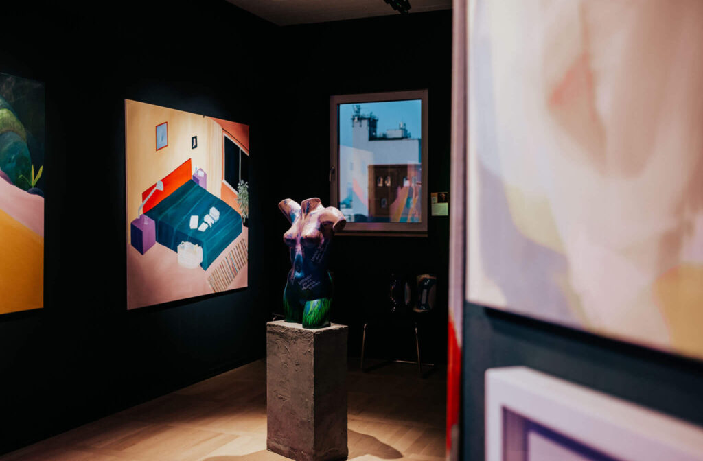Arbeiten von folgenden Künstler:innen (v.l.n.r.): Sarah Geppert, Melissa Schaller, Alexandra Bald